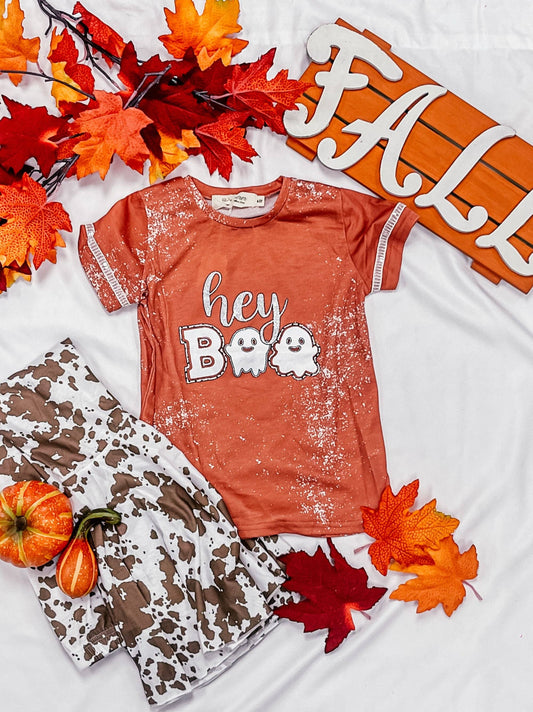 Girls' Hey Boo Ringer on Orange Splatter Tee