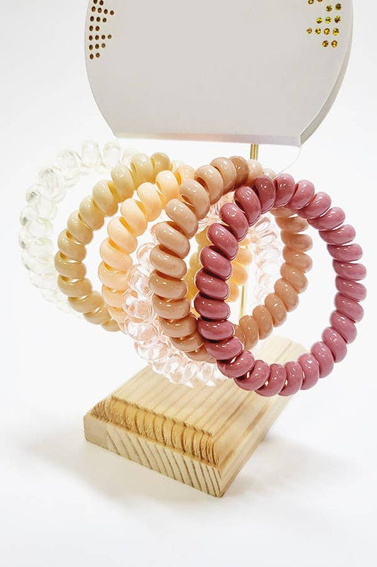 6 pcs Mauve Tone Phone Cord Spiral Hair Tie Set