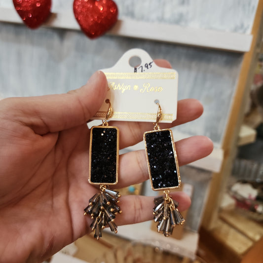 CRUSHING ON YOU BLACK CRYSTAL RECTANGLE DANGLE EARRINGS