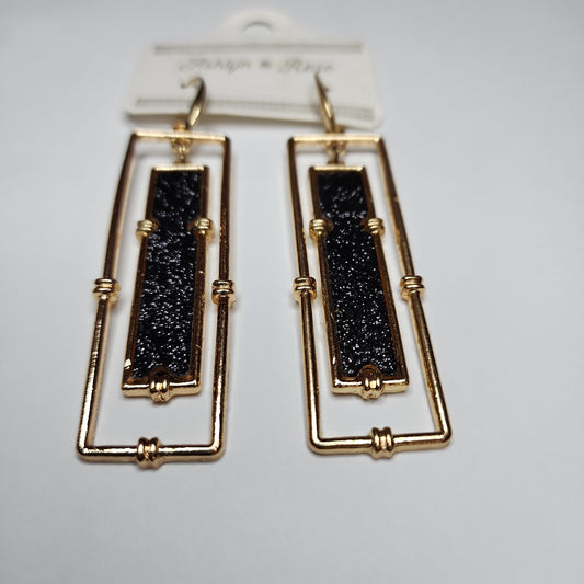 Think Outside Of The Frame Black And Gold Rectangular Earrings