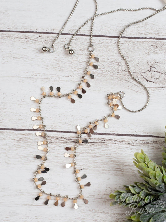 in Style Beaded Necklace with Teardrop Pendant and Lace Tassel